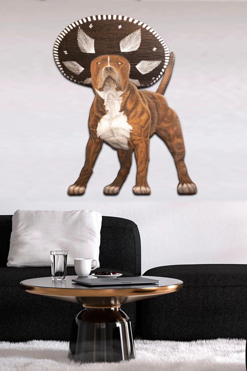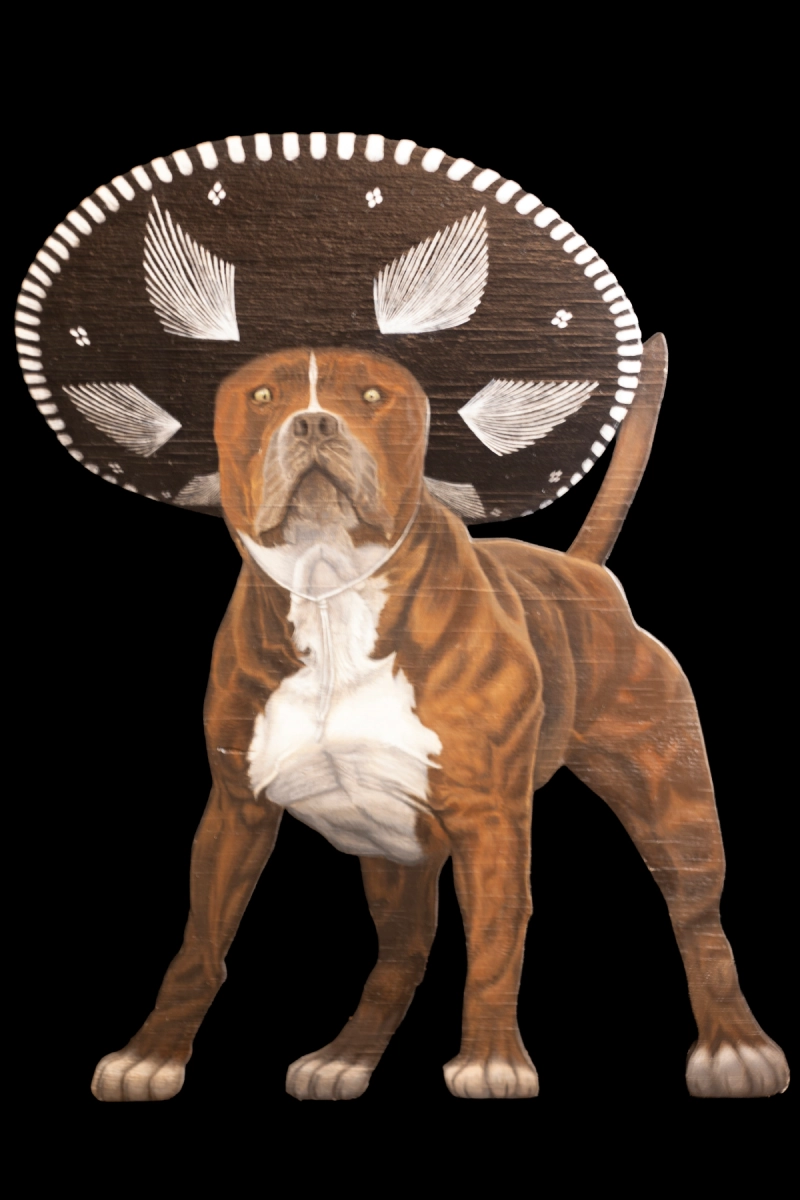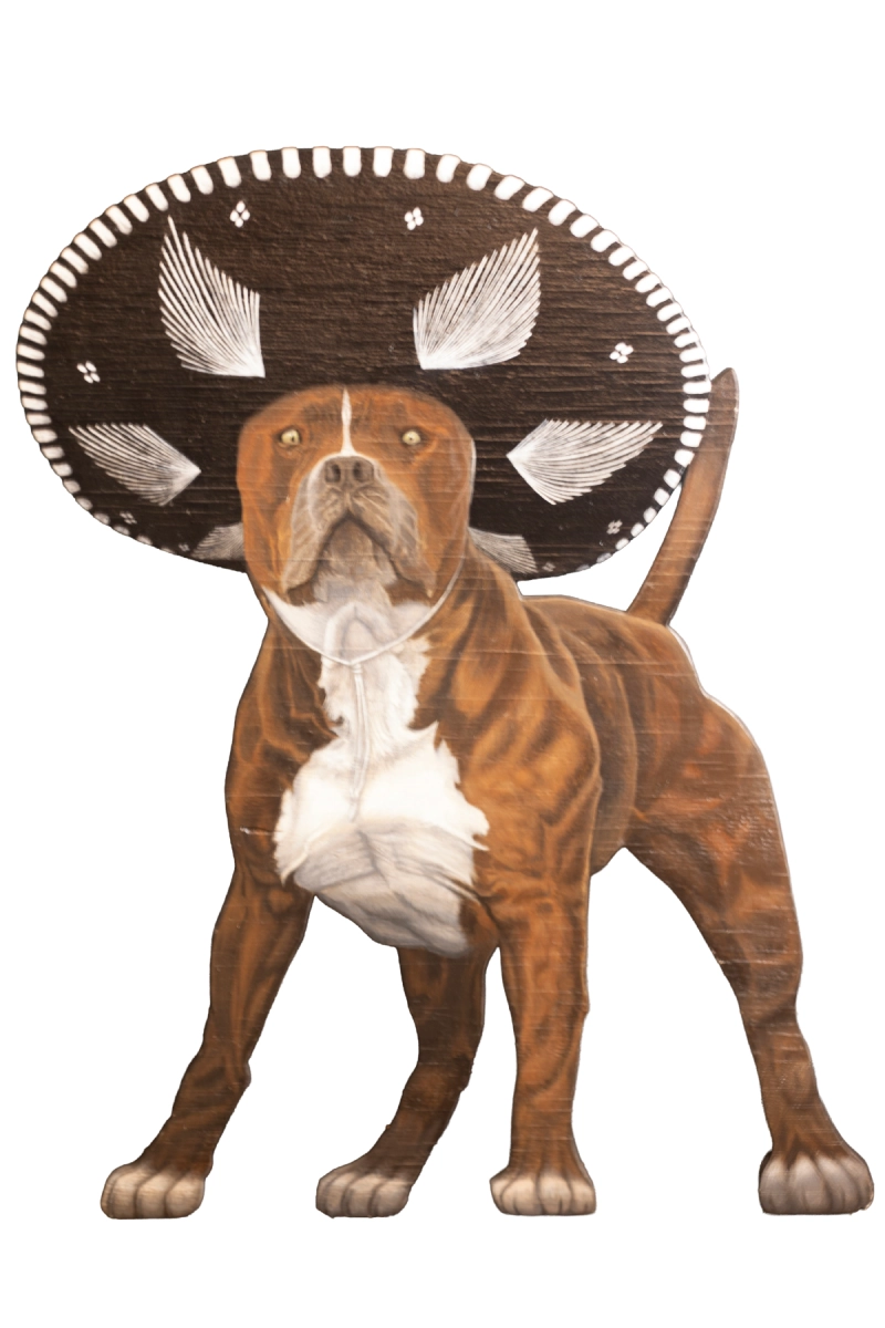 At a Quinceañera party in Galveston, Texas, I saw a Pitbull wearing a Mariachi hat. I thought it was cool, so I created this piece.